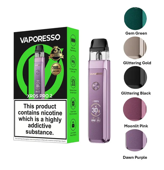 The Vaporesso XROS Pro 2 Pod Vape Kit is a sleek, premium pod system designed for exceptional flavour, reliability, and performance. Built with Vaporesso’s advanced mesh coil technology and adjustable airflow, the XROS Pro 2 delivers smooth, satisfying vapour with rich taste in every draw. Its ergonomic, durable design fits comfortably in your hand or pocket, while the easy top-fill pods and USB-C fast charging make refills and recharges effortless. Whether you’re new to vaping or upgrading your device, the XROS Pro 2 offers a perfect blend of convenience and power, ideal for mouth-to-lung (MTL) vaping and flavour enthusiasts alike.
